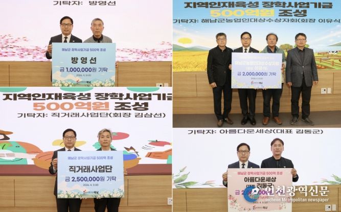 [인천광역신문] 최예준 기자 | 해남군은 지난 3일 군청 상황실에서 지역 인재 육성을 위한 장학사업기금 기탁식을 개최했다.
