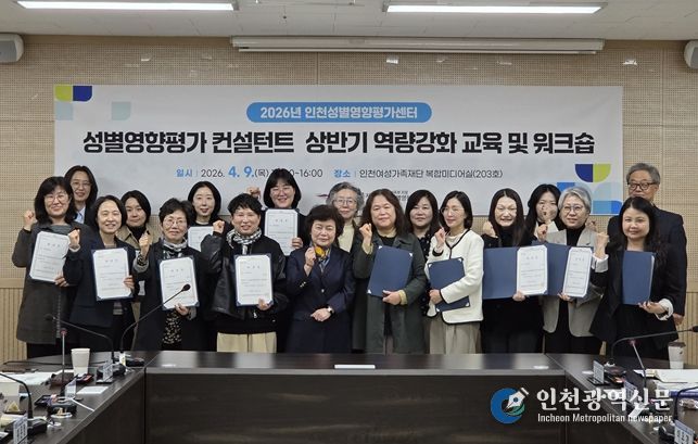 [인천광역신문] 최예준 기자 | 인천여성가족재단 성평등가족부 지정 인천성별영향평가센터는 4월 9일 재단 내 복합미디어실에서 ‘2026년 상반기 인천광역시 성별영향평가 컨설턴트 역량강화 교육 및 워크숍’을 개최했다.