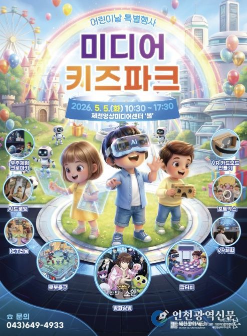 [인천광역신문] 최예준 기자 | 제천문화재단이 오는 5월 5일 어린이날을 맞아 제천영상미디어센터 ‘봄’(이하 센터)에서 어린이날 특별행사 '미디어 키즈파크'를 개최한다.