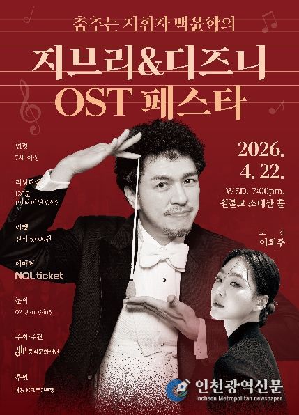 [인천광역신문] 최예준 기자 | 동작구가 오는 22일 오후 7시, 원불교 소태산홀(현충로 75)에서 ‘춤추는 지휘자 백윤학의 지브리&디즈니 OST 페스타’를 개최한다고 밝혔다.