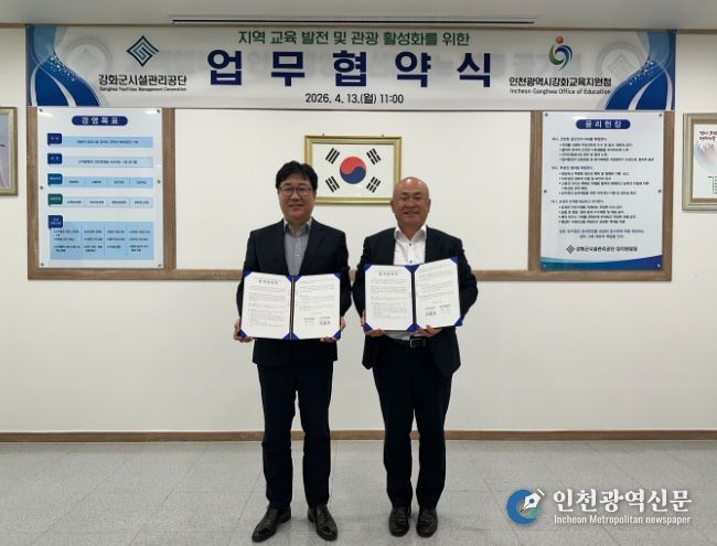 [인천광역신문] 최예준 기자 | 인천강화교육지원청은 13일 강화군시설관리공단과 ‘지역 교육 발전 및 관광 활성화를 위한 업무협약’을 체결했다.
