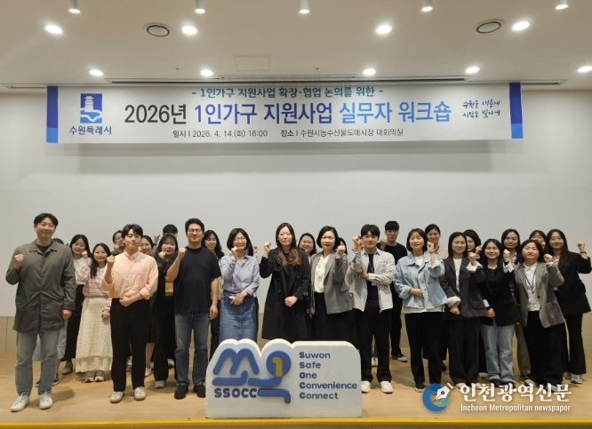 [인천광역신문] 최예준 기자 | 수원특례시는 14일 수원시농수산물도매시장 관리동 대회의실에서 ‘2026년 수원시 1인가구 지원사업 실무자 워크숍’을 열고 사업 추진 상황을 점검했다.