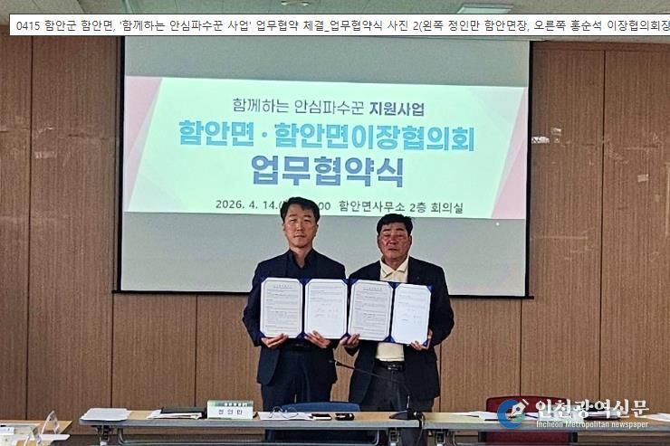 [인천광역신문] 최예준 기자 | 함안군 함안면은 지난 14일 함안면사무소 2층 회의실에서 함안면 이장협의회와 ‘함께하는 안심파수꾼’ 사업 추진을 위한 업무 협약을 체결했다고 밝혔다.