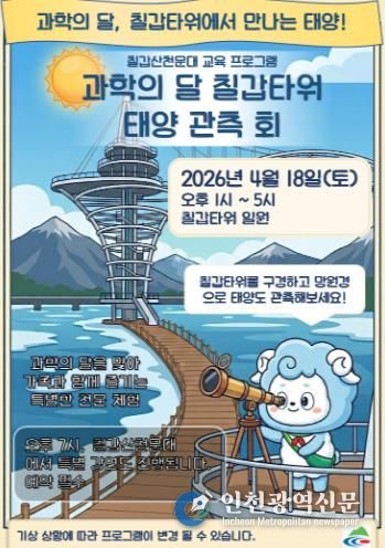 [인천광역신문] 최예준 기자 | 청양군이 오는 18일 과학의 달을 맞아 칠갑타워와 칠갑산천문대 일원에서 온 가족이 함께 즐길 수 있는 특별 천문 교육 프로그램을 운영한다.