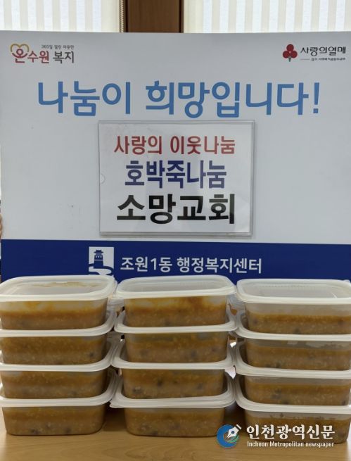 [인천광역신문] 최예준 기자 | 수원시 장안구 조원1동 지역사회보장협의체와 2025년 7월 업무협약을 맺은 소망교회가 지난 14일, 조원1동 관내 취약계층 20명을 위해 호박죽을 지원했다.