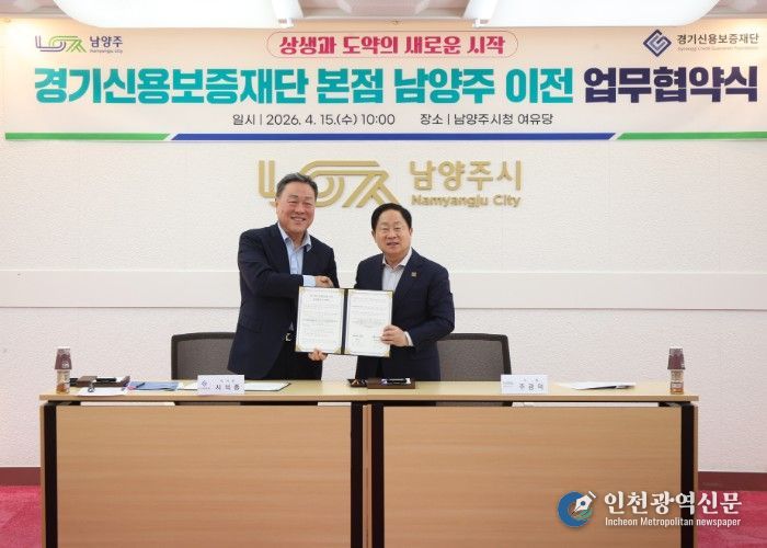 [인천광역신문] 최예준 기자 | 남양주시는 15일 시청 여유당에서 경기신용보증재단과 본점 이전을 위한 업무협약을 체결했다고 밝혔다.