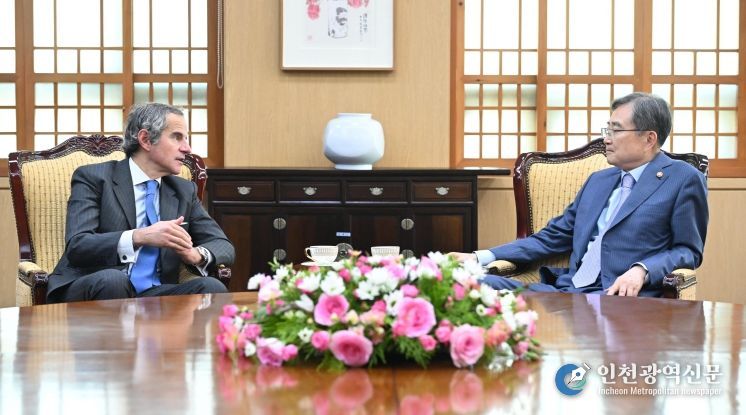 [인천광역신문] 최예준 기자 | 조현 외교부 장관은 4월 15일 방한 중인 라파엘 그로시(Rafael Grossi) 국제원자력기구(IAEA) 사무총장과 면담하고 △한-IAEA 협력, △중동 등 글로벌 현안, △한반도 정세 및 북핵 문제 등 주요 현안에 대해 의견을 교환했다.