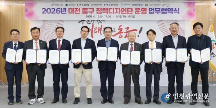 [인천광역신문] 최예준 기자 | 대전 동구는 지·산·학 협력 기반의 ‘정책디자인단’ 운영을 위해 지난 15일 지역 대학 및 관계기관과 업무협약을 체결했다고 밝혔다.