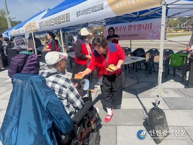 [인천광역신문] 최예준 기자 | (사)충주시여성단체협의회는 16일 제46회 장애인의 날을 맞아 수제빵 1,000여 개를 전달하는 ‘이웃사랑 빵 나눔행사’를 진행했다.