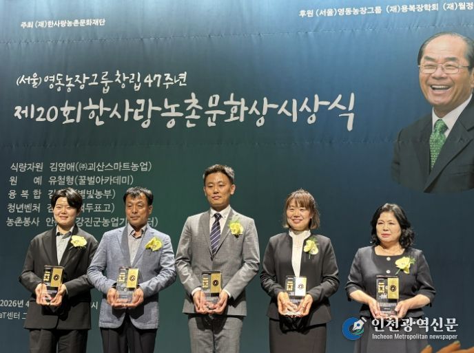 [인천광역신문] 최예준 기자 | 충북 괴산군은 지난 16일 (재)한사랑농촌문화재단이 주관하는 ‘제20회 한사랑농촌문화상’을 ㈜괴산스마트농업 김영애 대표가 수상했다고 밝혔다.