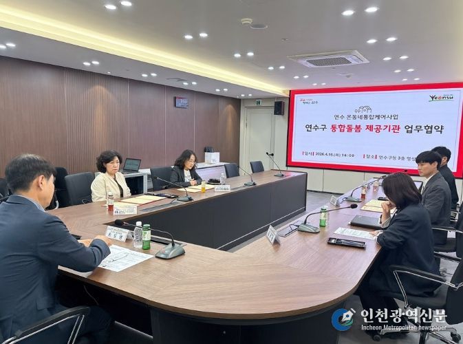 [인천광역신문] 최예준 기자 | 연수구는 지난 16일 구청 제2영상회의실에서 ‘연수 온동네 통합케어사업 특화서비스’의 원활한 추진과 질적 향상을 위해 전문 서비스 제공기관들과 업무협약을 체결했다.