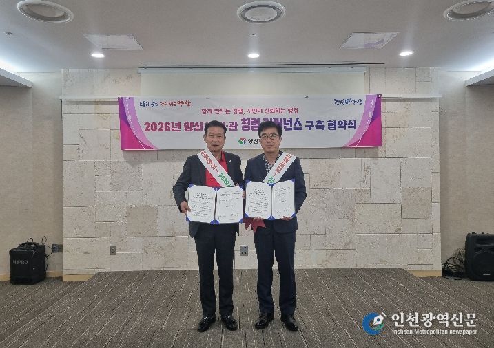 [인천광역신문] 최예준 기자 | 양산시 시민통합위원회(위원장 박원현)와 양산시 소통담당관은 2026년 4월 16일, 양산시립박물관에서 민‧관 청렴거버넌스 공동 협약식을 체결했다. 이번 협약은 청렴한 행정문화 정착과 시민과의 신뢰 구축을 목표로 마련됐다.