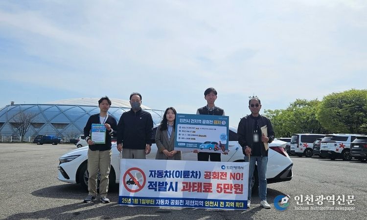 [인천광역신문] 최예준 기자 | 인천 미추홀구는 2025년부터 한층 강화된 ‘자동차 공회전 제한’을 알리기 위해 16일 오전 문학경기장에서 인천시와 합동으로 공회전 단속 및 홍보 캠페인을 실시했다.