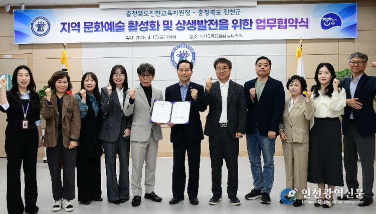 [인천광역신문] 최예준 기자 | 충청북도진천교육지원청과 진천군은 4월 17일 지역 문화예술 활성화 및 상생발전을 위한 업무협약(MOU)을 체결했다.