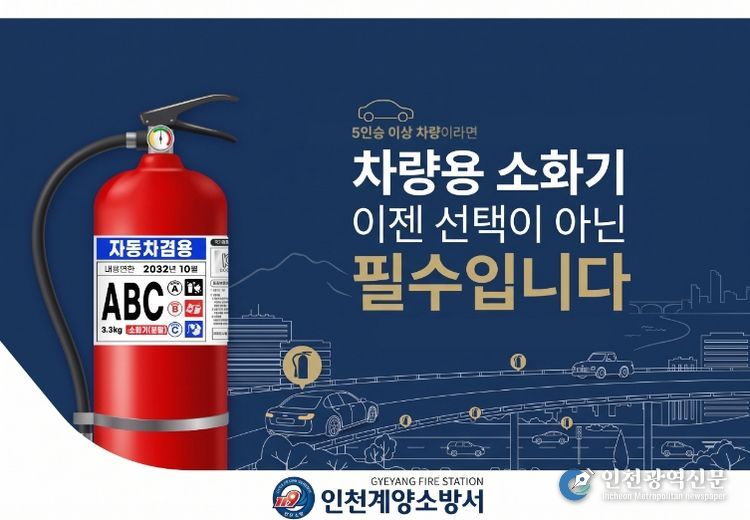 [인천광역신문] 최예준 기자 | 계양소방서(서장 송태철)는 완연한 봄을 맞아 주말 나들이 등 장거리 차량 이동이 증가함에 따라, 차량 화재 사고에 대비해 '차량용 소화기' 비치 및 상태 점검을 당부한다고 17일 밝혔다.