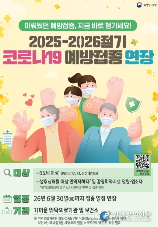 [인천광역신문] 최예준 기자 | 고성군보건소는 코로나19 고위험군을 대상으로 2025-2026절기 접종 기간을 6월 30일까지 연장한다고 밝혔다.