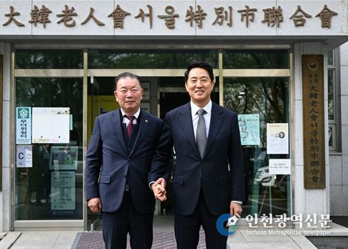 [인천광역신문] 최예준 기자 | 오세훈 서울시장은 17일 오후 3시 30분, 용산구에 위치한 대한노인회 서울시연합회를 방문해 어르신 활력증진과 초고령사회에 대응하기 위한 업무협약을 체결하고, 양 기관의 협력 방안을 논의했다.