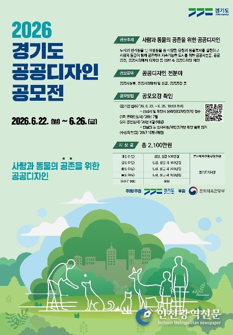 [인천광역신문] 최예준 기자 | 경기도가 ‘사람과 동물의 공존을 위한 공공디자인’이란 주제로 제20회 ‘2026년 경기도 공공디자인 공모전’을 6월 22일부터 26일까지 개최한다.