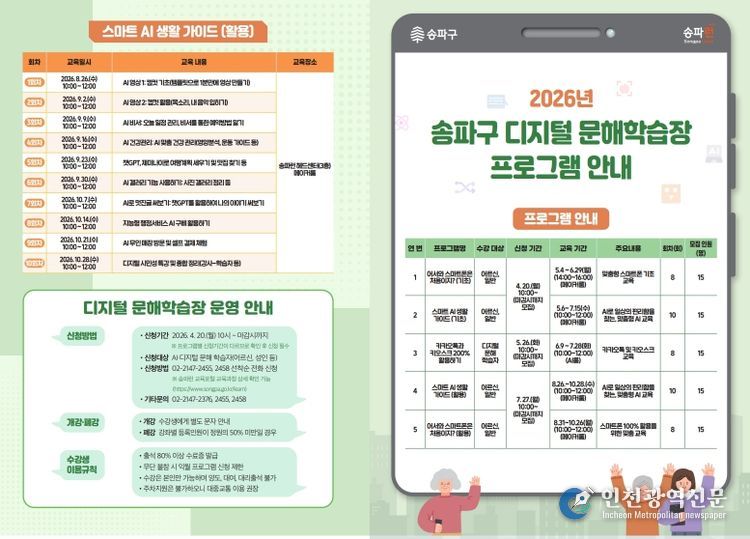 [인천광역신문] 최예준 기자 | 서울 송파구는 스마트폰과 AI 사용이 익숙하지 않은 주민을 위해 5월부터 ‘디지털 문해학습장’ 교육을 운영한다.