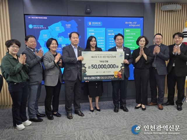 [인천광역신문] 최예준 기자 | NH농협은행 아산시지부가 지역 문화예술 진흥과 시민 문화향유 확대를 위해 (재)아산문화재단에 5천만 원의 기부금을 전달했다.