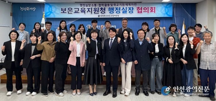 [인천광역신문] 최예준 기자 | 충청북도보은교육지원청은 대회의실에서 교육장, 행정과장, 관내 초‧중‧고 행정실장 등 20여 명이 참석한 가운데 ‘2026년 상반기 행정실장 협의회’를 개최했다고 21일 밝혔다.