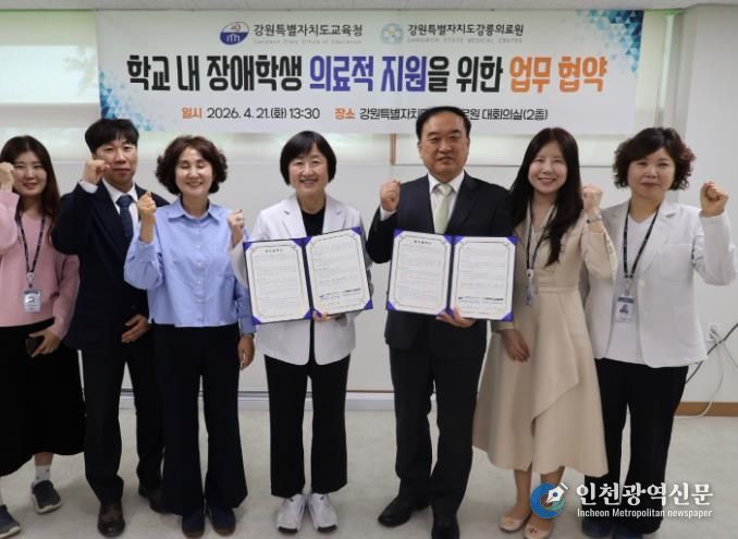 [인천광역신문] 최예준 기자 | 강원특별자치도교육청은 4월 21일 13시 30분, 강원특별자치도강릉의료원과 강릉·동해 지역 특수학교 중도장애학생의 학교 내 의료적 지원 강화를 위한 업무협약(MOU)을 체결한다.