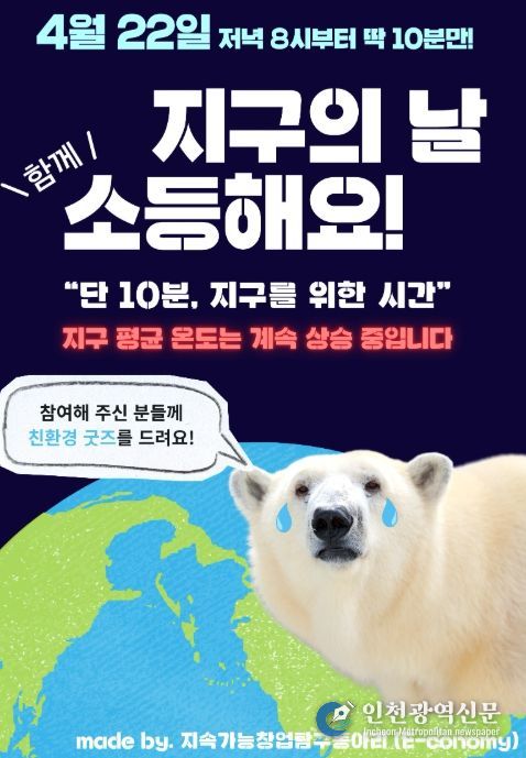 [인천광역신문] 최예준 기자 | 충북비즈니스고등학교(교장 윤승자)는 제56주년 '지구의 날'을 맞아 22일 수요일 오후 8시부터 교직원과 학생 등 100여 명이 참여하는 소등행사를 운영한다.