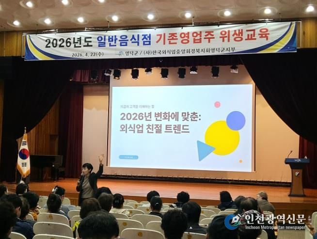 [인천광역신문] 최예준 기자 | 영덕군은 관내 외식 산업 영업자들의 위생 관리 역량을 높이고 고품격 외식 환경을 조성하기 위해 22일 영덕군민회관에서 일반음식점 기존영업자 300여 명을 대상으로 ‘2026년 일반음식점 위생교육’을 시행했다.