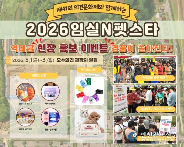 [인천광역신문] 최예준 기자 | 임실군이 오는 5월 1일부터 3일까지 임실 오수의견관광지에서 열리는 제41회 의견문화제와 함께하는‘2026 임실N펫스타’에서 반려견과 함께하는 방문객을 위한 맞춤형 현장 이벤트를 선보인다.