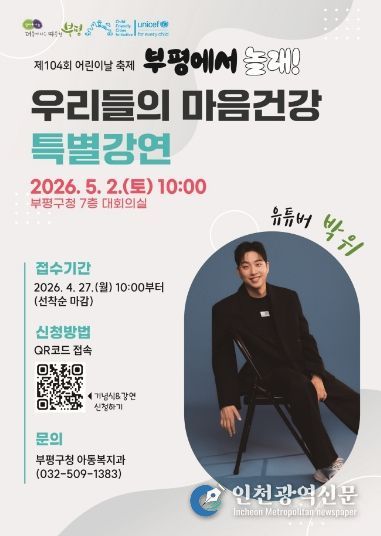 한편, 구는 보다 많은 어린이들이 즐거운 시간을 보낼 수 있도록 어린이주간(5.1.~5.7.) 동안 부평구문화재단, 부평역사박물관 등 지역 내 기관에서 진행되는 어린이 축제와 도서관·체육시설 등 관련 시설 정보를 구청 누리집과 SNS 등을 통해 제공할 예정이다.