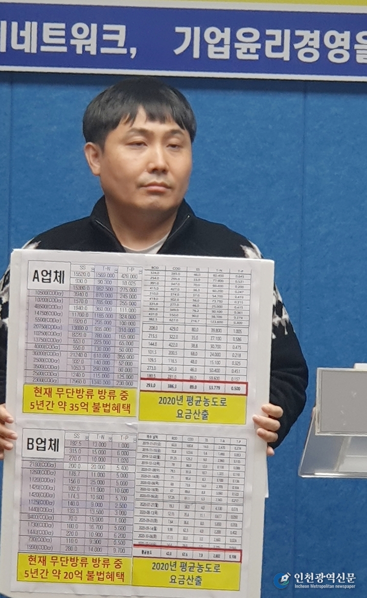 환경전문 시민단체 글로벌에코넷(상임회장 김선홍)과 인천 행·의정 감시네트워크는 22일(수) 오전 브리핑룸에서 '공익제보 양심선언 기자회견'을 공동 개최하고, 최근 지역 사회 내 제기된 수십억 원 추정 특혜 의혹에 대한 관계 기관의 신속하고 철저한 진상 조사를 강력히 촉구했다.