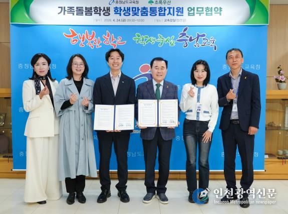 [인천광역신문] 최예준 기자 | 충남교육청은 24일, 도교육청 접견실에서 충남교육청 관계자와 초록우산 충남지역본부 관계자들이 참석한 가운데, ‘가족돌봄학생’의 건강한 성장을 지원하기 위한 업무협약을 체결했다고 밝혔다.