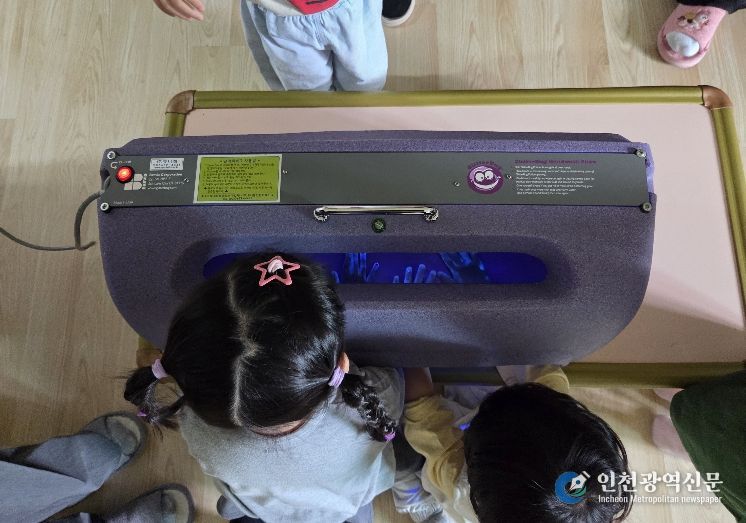 특히, 이번 교육에서는 아이들이 눈으로 직접 세균을 확인할 수 있는 ‘뷰박스(View-box)’를 활용한 체험형 교육이 큰 호응을 얻고 있다. 형광 로션을 바르고 손을 씻은 뒤, 뷰박스 검사기로 손에 남은 세균(형광물질)을 직접 눈으로 확인하는 체험형 방식으로 진행돼 흥미를 높이는 동시에 교육 효과를 극대화했다는 평가다.