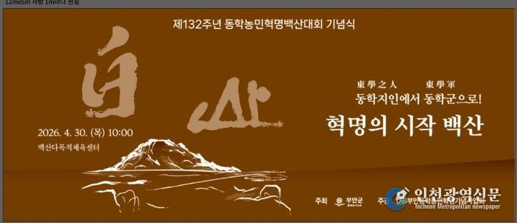 [인천광역신문] 최예준 기자 | 부안군은 오는 30일 부안 백산성지 및 백산다목적체육센터 일원에서 제132주년 부안 동학농민혁명 백산대회 기념행사를 개최한다고 밝혔다.