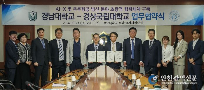[인천광역신문] 최예준 기자 | 경상국립대학교와 경남대학교는 4월 24일 오전 10시 경남대학교 국제세미나실에서 국가균형성장과 동남권 지역 대학의 동반성장 촉진을 위한 업무협약을 체결했다.
