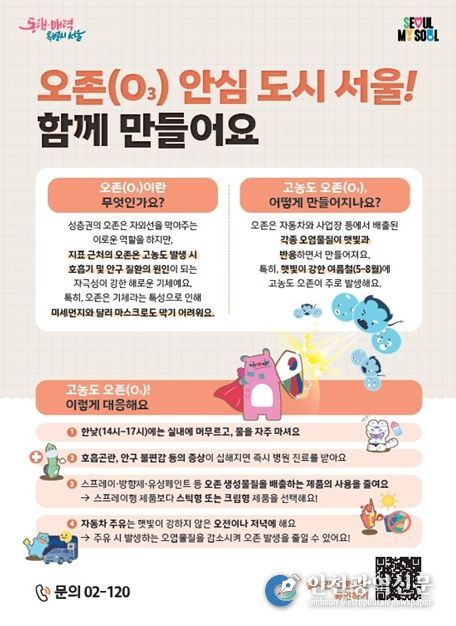 [인천광역신문] 최예준 기자 | 서울시는 여름철 반복되는 고농도 오존에 선제적으로 대응하기 위해 5월부터 8월까지 4개월간 ‘2026 고농도 오존 계절관리 집중대책’을 시행하고 “오존 안심도시, 서울” 실현에 박차를 가한다.