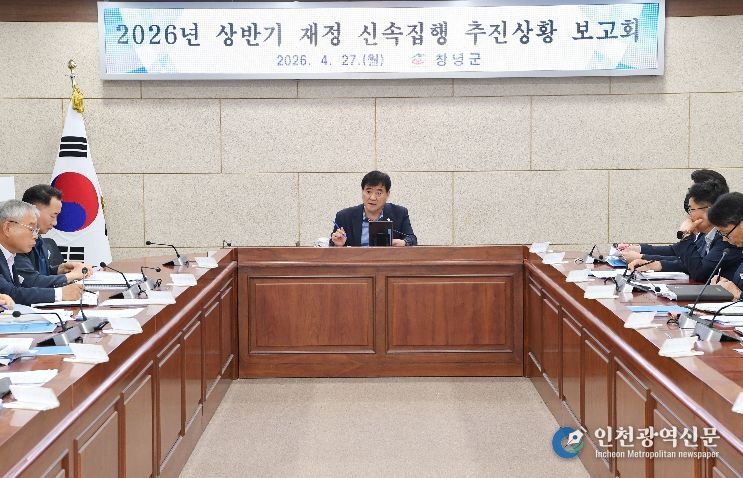 [인천광역신문] 최예준 기자 | 창녕군은 27일 심상철 군수 권한대행 주재로 간부공무원이 참석한 가운데 ‘2026년 상반기 재정 신속집행 추진상황 점검보고회’를 개최하고 가시적인 경제 회복 성과 창출에 나섰다.