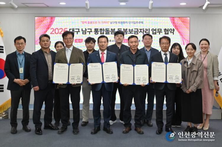 [인천광역신문] 최예준 기자 | 대구 남구는 지난 24일 지역사회 통합돌봄 활성화를 위한 『돌봄보금자리』 운영을 위해 LH대구북부권주거복지지사와 남구종합사회복지관 및 대명사회복지관과 업무협약을 체결했다고 밝혔다.
