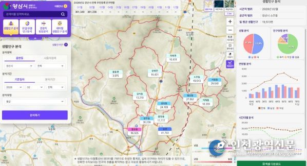 [인천광역신문] 최예준 기자 | 양산시가 시민 누구나 지역 인구 흐름을 확인할 수 있는 ‘양산시 생활인구 분석 서비스’를 구축해 공개했다.