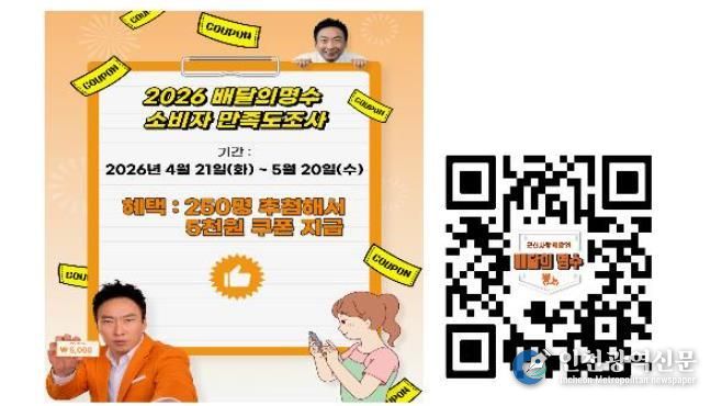 [인천광역신문] 최예준 기자 | 군산시 공공배달앱 ‘배달의명수’가 서비스 경쟁력을 강화하고 사용자 편의를 높이기 위해 이용 현황 및 만족도 조사를 실시한다.