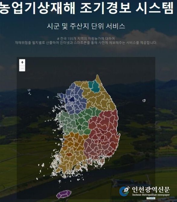 ‘농업기상재해 조기경보서비스’는 전국 155개 지역의 농가를 대상으로 필지별 재해 위험을 산출해 인터넷과 스마트폰을 통해 사전에 예보하는 시스템이다.