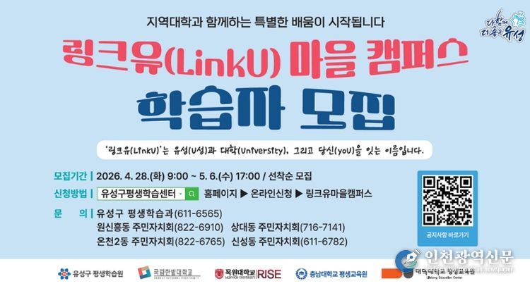[인천광역신문] 최예준 기자 | 대전 유성구는 5월부터 지역대학과 연계한 주민 밀착형 평생학습 ‘링크유(LinkU) 마을캠퍼스’ 상반기 프로그램을 운영한다.
