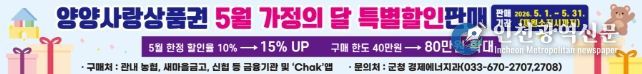[인천광역신문] 최예준 기자 | 양양군이 5월 가정의 달을 맞아 군민들의 경제적 부담을 덜고 침체된 지역 상권을 살리기 위해 양양사랑상품권 특별 할인 판매를 실시한다고 밝혔다.