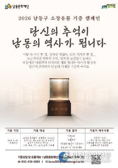 남동문화재단은 소래역사관을 중심으로 ‘2026 남동구 소장유물 기증 캠페인’을 오는 4월 20일부터 연중 상시 운영한다고 28일 밝혔다.