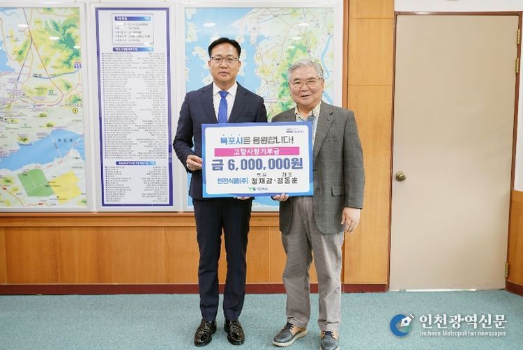 [인천광역신문] 최예준 기자 | 목포시는 지난 27일 만전식품 정재강 회장이 시를 방문해 고향사랑기부금 600만 원을 기탁했다고 밝혔다.