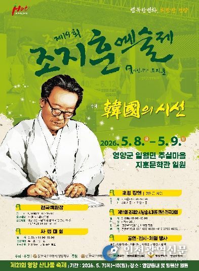 [인천광역신문] 최예준 기자 | 영양군은 우리나라를 대표하는 청록파 시인이자 《지조론》의 저자인 조지훈 선생의 문학정신을 기리고자 오는 5월 8일부터 9일까지 2일간 영양군 일월면 주실마을 일원에서 '제19회 조지훈 예술제'를 개최한다.