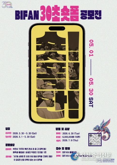 [인천광역신문] 최예준 기자 | 부천시는 부천국제판타스틱영화제(BIFAN)와 함께 ‘숏! 폼! 판! BIFAN 30초 숏폼 공모전’을 열고, 제30회를 맞은 영화제를 기념해 시민 참여형 프로그램을 운영한다.