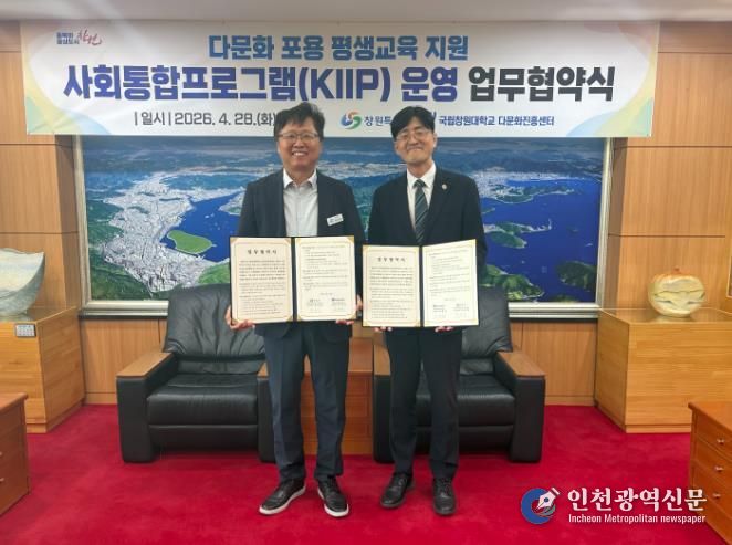 [인천광역신문] 최예준 기자 | 창원특례시는 시청 접견실에서 국립창원대학교와 외국인 주민의 안정적인 지역사회 정착 지원을 위한 '사회통합프로그램 운영' 업무협약을 체결했다고 밝혔다.