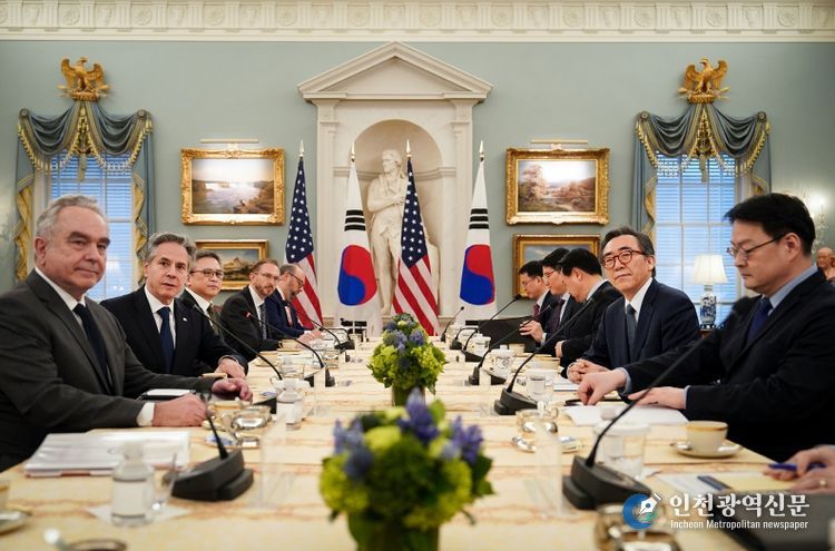 [인천광역신문] 관리자 기자 | 미국을 방문중인 조태열 외교부장관은 2월 28일 오후(현지시간) 美 국무부 에서 안토니 블링컨(Antony J. Blinken) 국무장관과 취임 후 첫 한미 외교장관회담을 가졌다. 한미일 외교장관회의(2.22) 후 6일 만에 다시 만난 양 장관은 한미동맹·한미일 협력, 북핵‧북한 문제, 정보협력, 지역‧글로벌 현안 등에 대해 유익하고 심도깊은 논의를 했다.