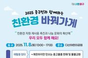 [인천광역신문] 최훈 기자 | 서울 중구는 오는 11월 8일 오후 1시부터 5시까지, 다산어린이공원에서 ‘2025년 중구민과 함께하는 친환경 바꿔가게’ 행사를 개최한다. 이번 행사는 일상 속에서 버려지는 물건의 가치를 다시 발견하고, 자원순환과 나눔의 문화를 확산시키기 위해 마련됐다. 재활용 장터, 업사이클링 체험, 환경 캠페인, 공연 등 다채로운 프로그램이 준비돼 있어 누구나 즐겁게 참여할 수 있다. 먼저‘재활용 장터’에서는 주민들이 직접 판매자로 나서, 깨끗하지만 사용하지 않는 물건들을 판매하거나 물물교환을 진행한다. 사전 신청을 마친 15개 팀의 주민 판매자가 참여해 의류·생활용품·육아용품 등 다양한 물품을 선보인다. 또한 버려지는 자원을 새롭게 탄생시키는 체험부스도 열린다. ‘플라스틱 뚜껑 랜드’부스에서는 병뚜껑을 조립해 작품을 만들고, 완성품은 전국 최초 쓰레기 연구소인 ‘새롬’에 전시할 예정이다. ‘책갈피가 된 비닐’ 부스에서는 버려진 비닐을 책갈피로 변신시키고, ‘새활용 키링 만들기’와 ‘커피박 샴푸바 만들기’등 다양한 체험이 진행돼 자원순환의 의미를 새긴다. 지역 기관들도 재활용과 환